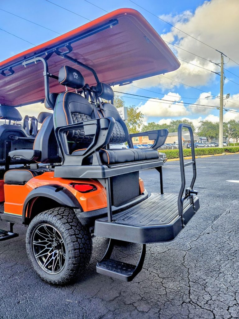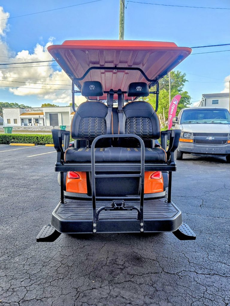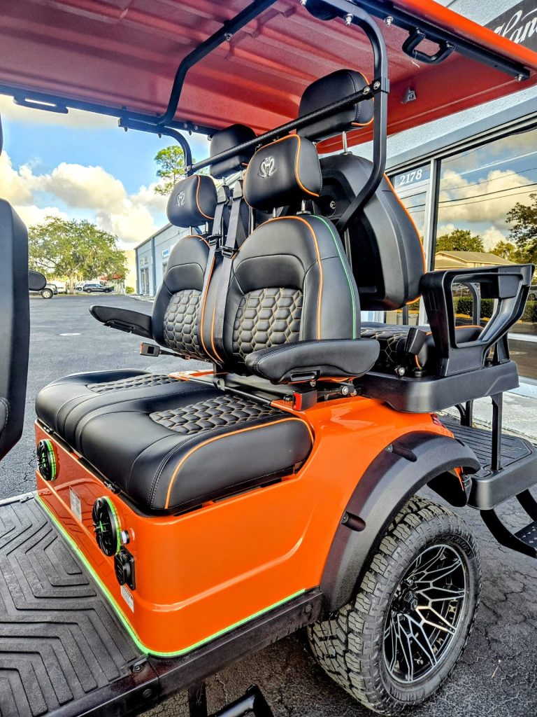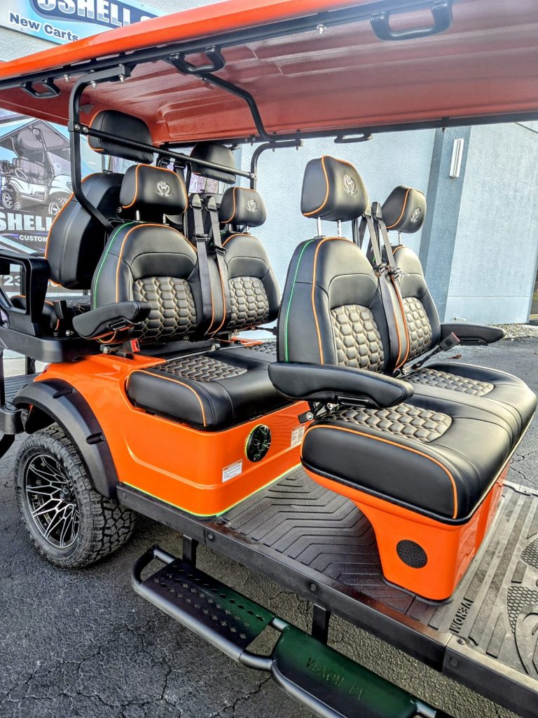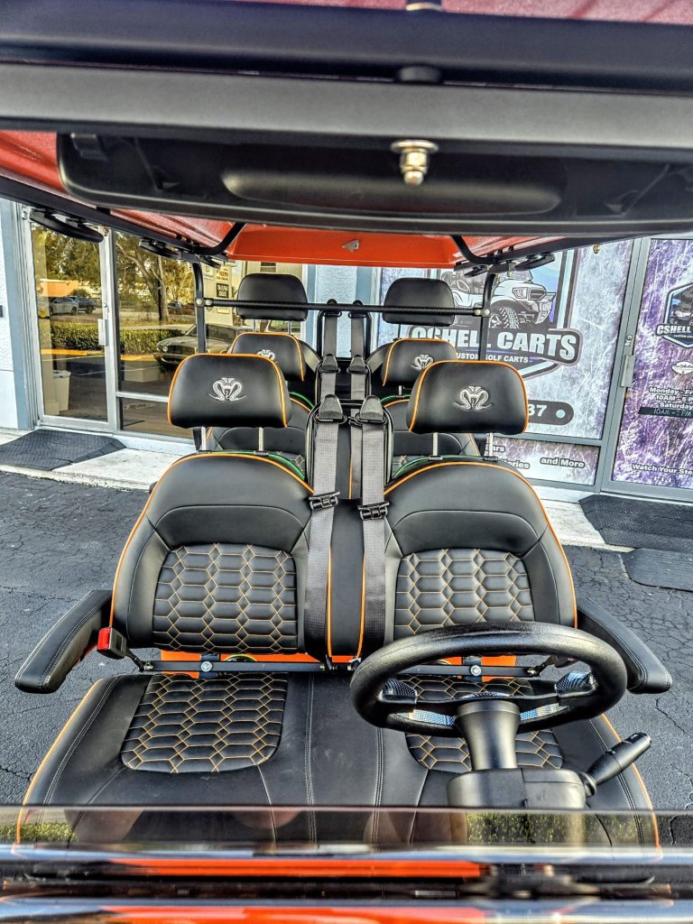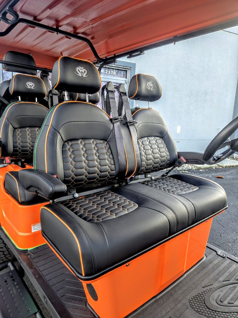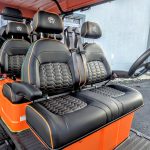 Metallic Orange with Black Seats with color match Orange piping and stitching